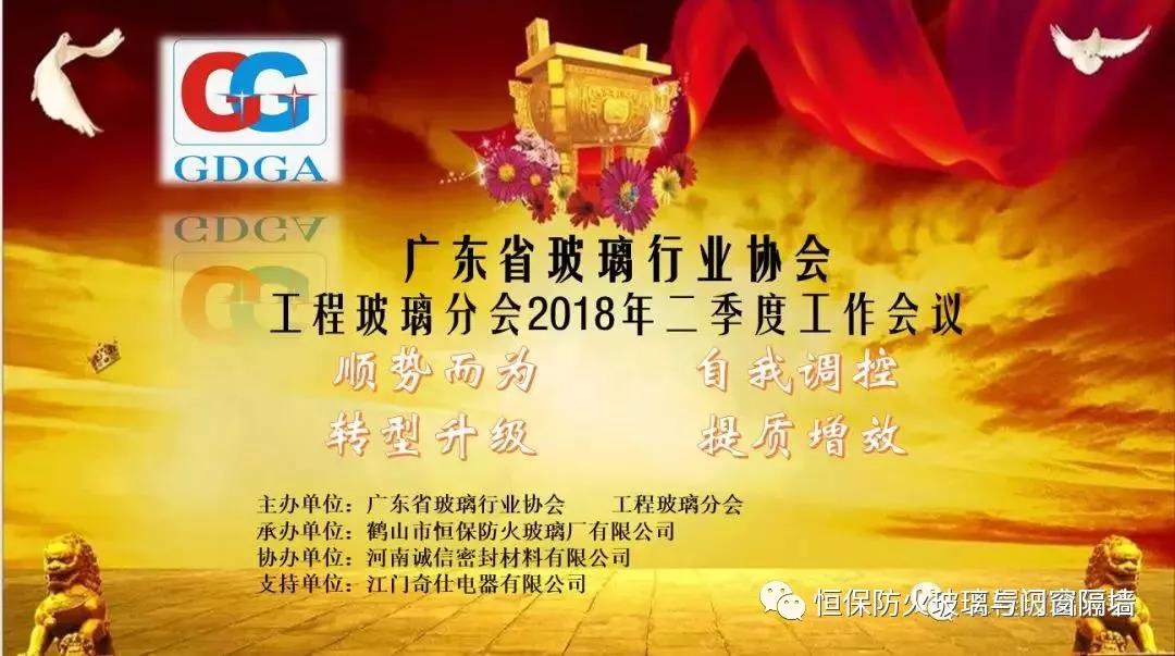 廣東省玻璃行業(yè)協(xié)會于7月7日在江門組織召開了“工程玻璃分會2018年第二季度工作會議”,會議以“順勢而為、自我調控、轉型升級、提質增效”為主題,省玻璃行業(yè)協(xié)會會長萬永寧,常務副會長黃少塔、秘書長陳林,省內南玻、耀皮、信義、銀通、中航三鑫、格蘭特、新華強、中南羅森、旗濱、南亮等20多家龍頭及骨干企業(yè)負責人參加了會議。本次會議由分會副會長單位江門鶴山市恒保防火玻璃廠有限公司和江門地爾電器股份有限公司聯(lián)合承辦,河南誠信密封材料有限公司協(xié)辦,工程玻璃分會秘書長陳銘波主持了本次會議。