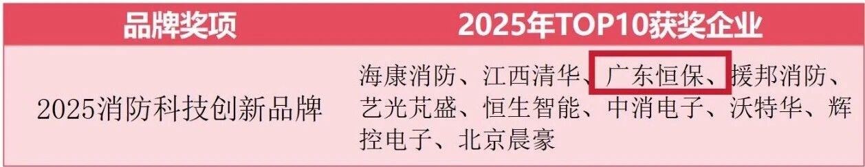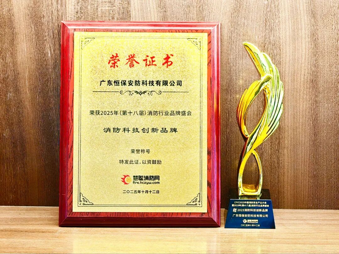 在消防行業(yè)創(chuàng)新浪潮與技術變革的關鍵節(jié)點,恒保公司憑借深厚的技術積累與前瞻性的研發(fā)布局,在眾多企業(yè)中脫穎而出,榮獲 “2025 消防科技創(chuàng)新品牌” 獎項。