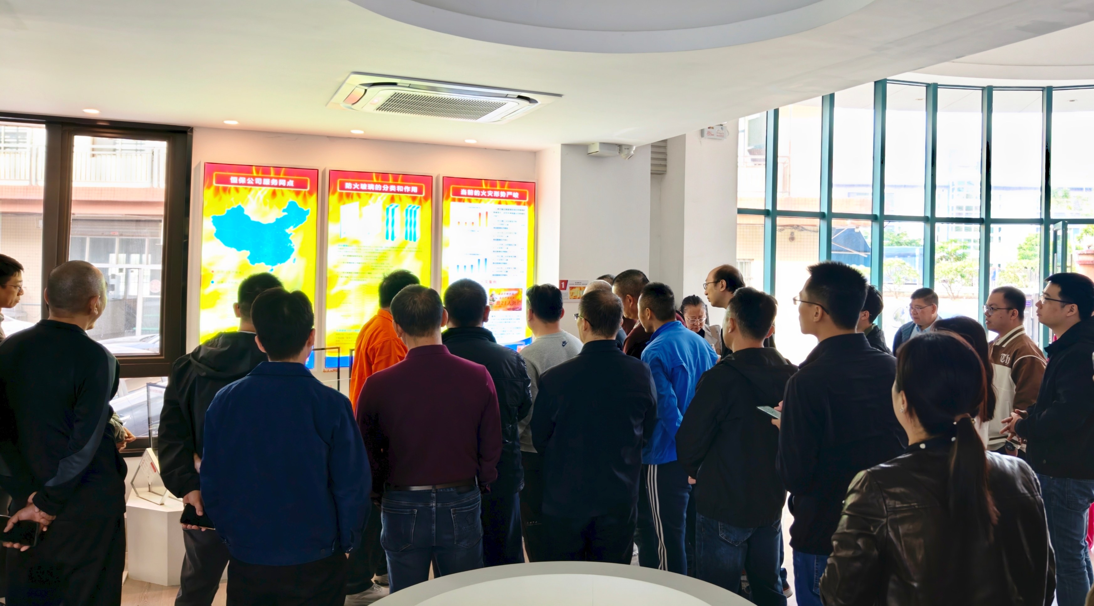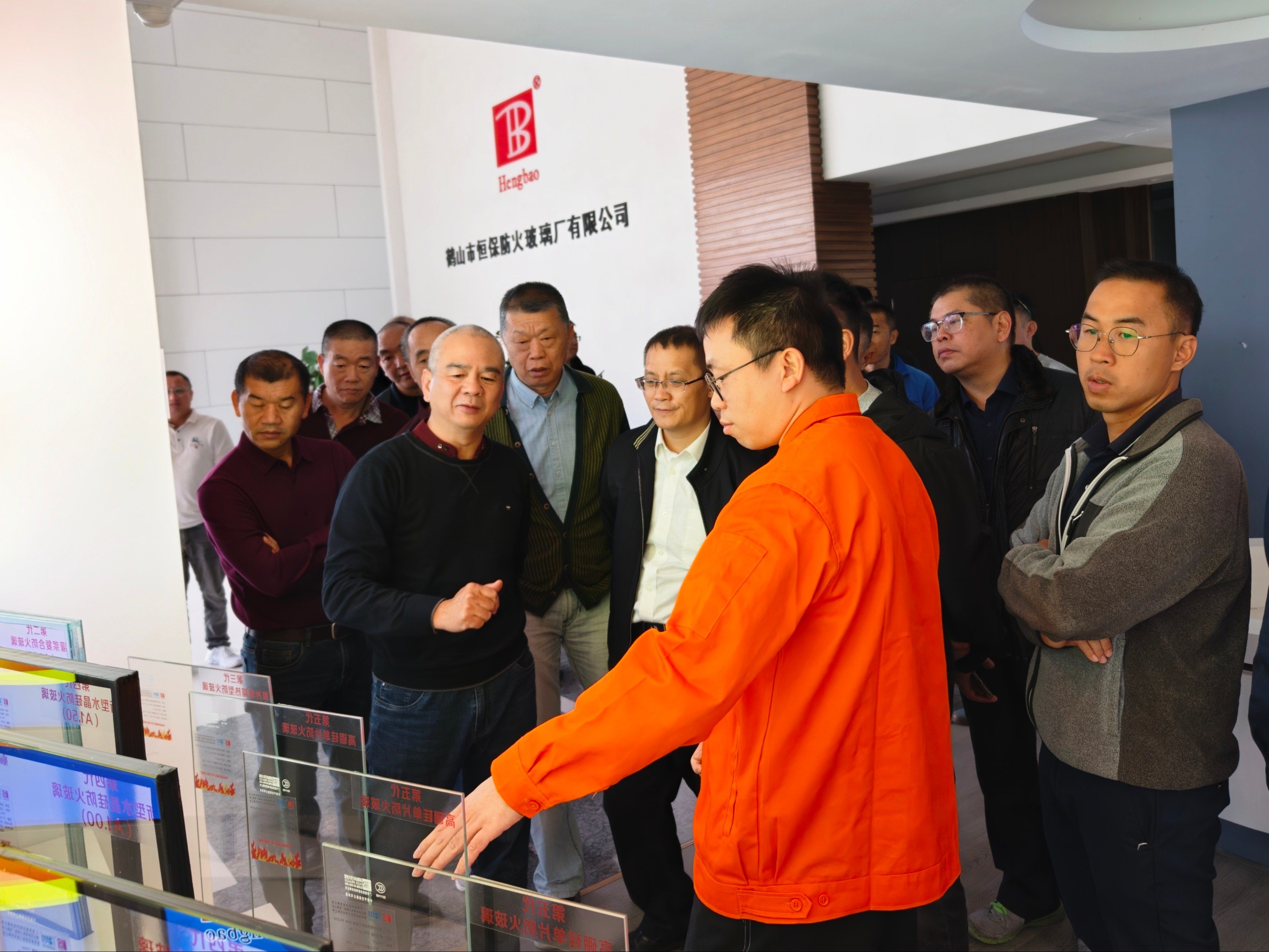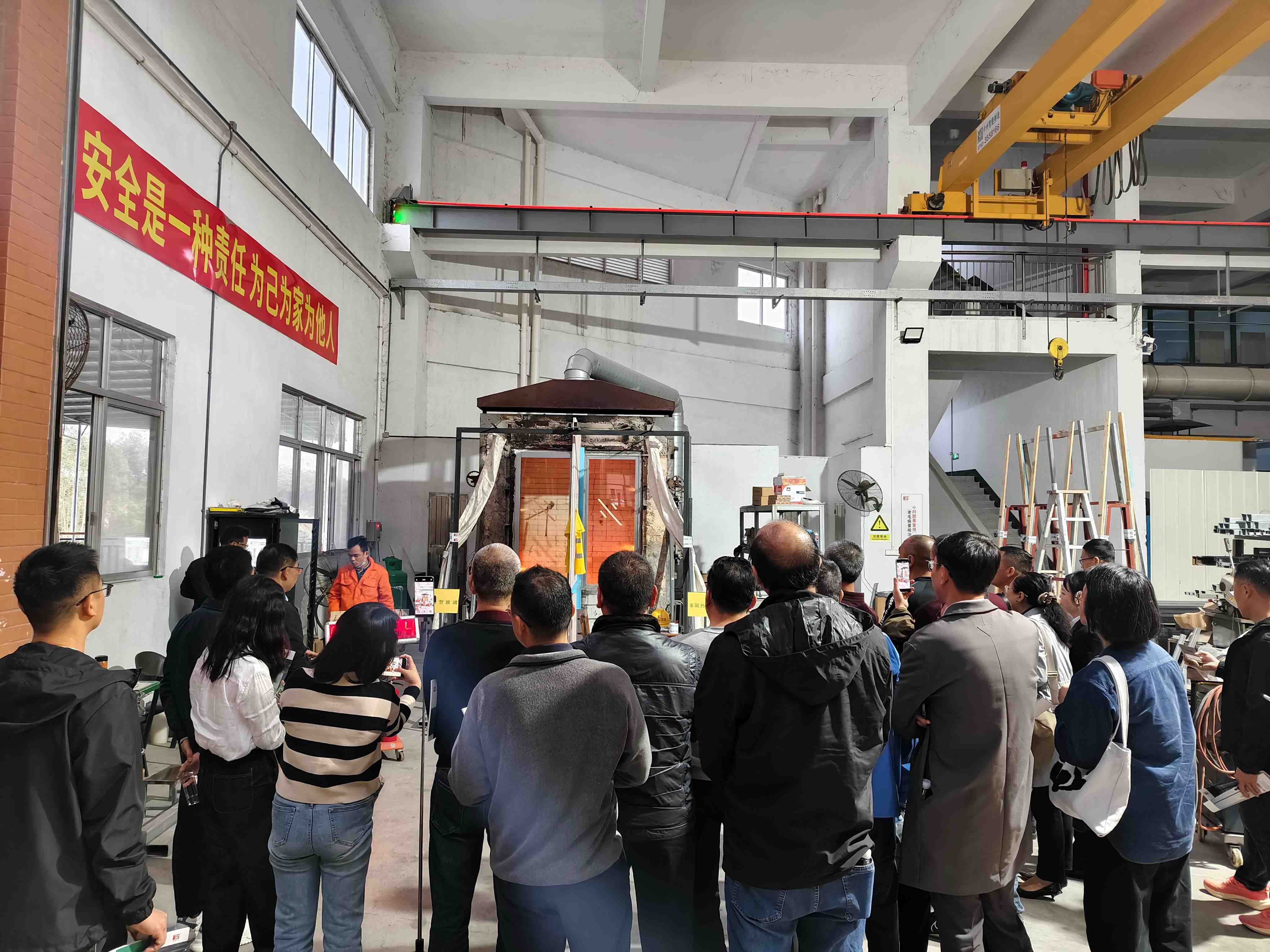 考察團前往恒保研發(fā)實驗樓觀看隔熱型防火玻璃與非隔熱型防火玻璃的對比實驗,通過直觀對比和專業(yè)講解,對不同類型的防火玻璃有了全方位認知。