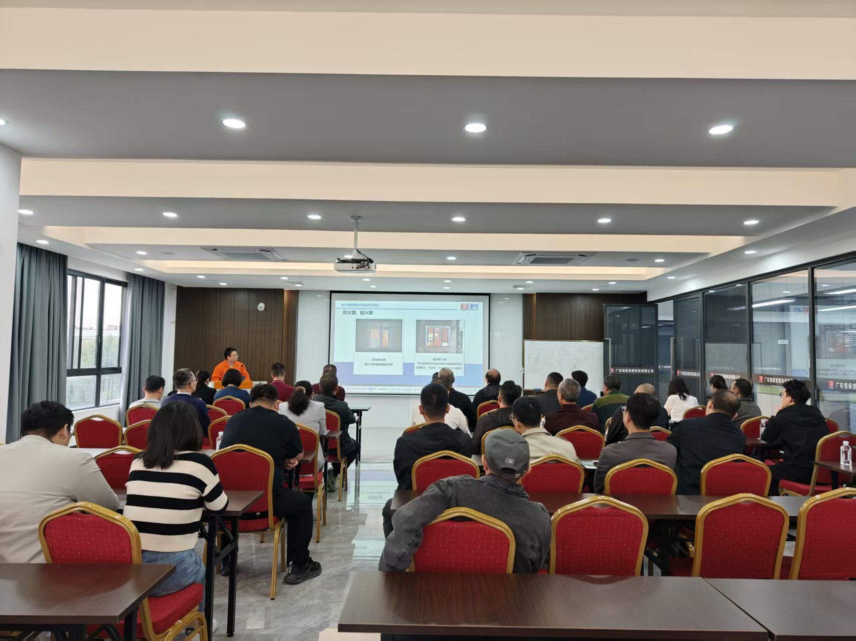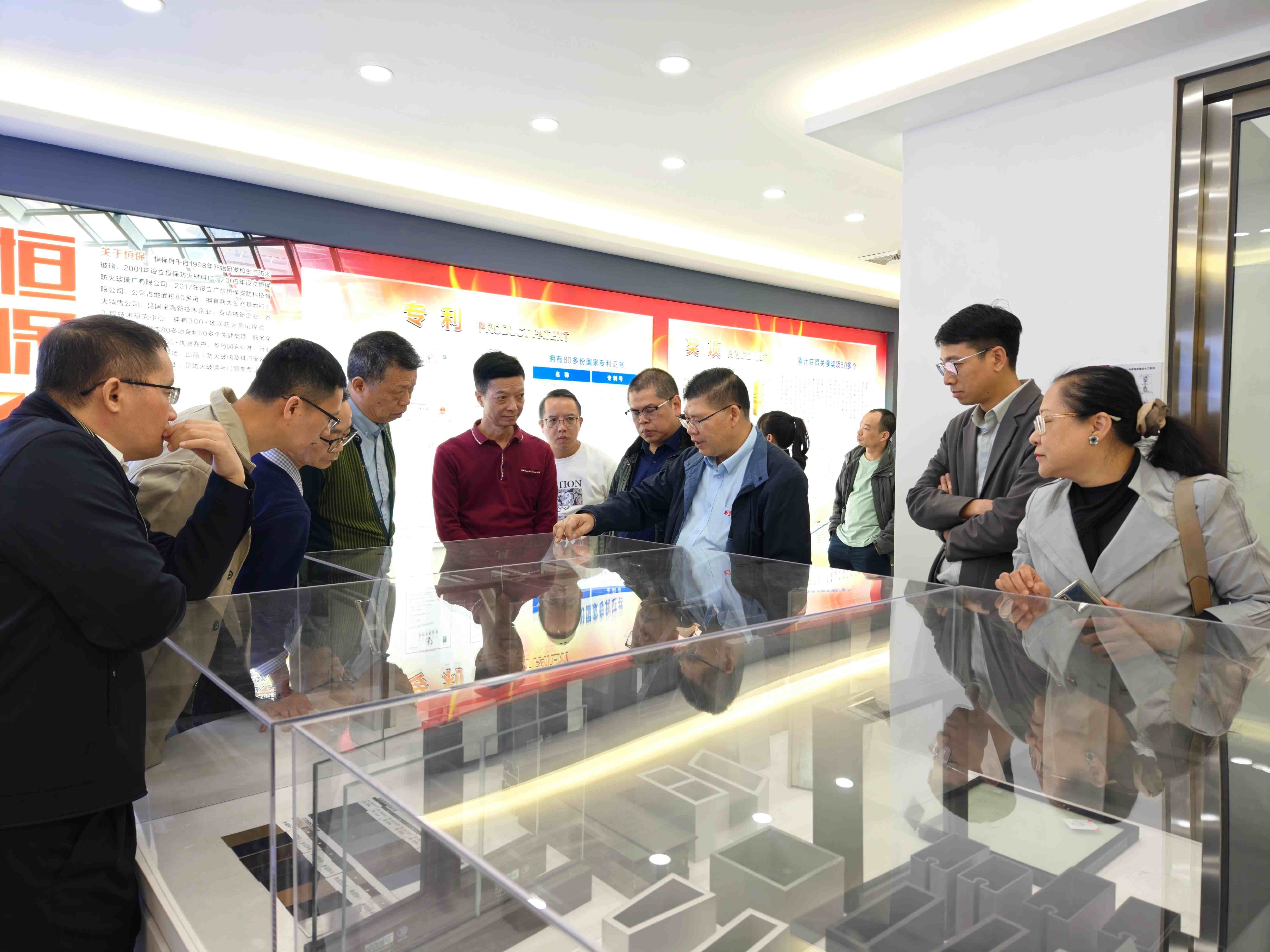 參訪團一行首先參觀恒保展廳,從企業(yè)發(fā)展歷程到各類防火核心產(chǎn)品,全方位展現(xiàn)了公司深耕行業(yè)多年的技術積淀與綜合實力。代表們駐足聆聽,就產(chǎn)品性能參數(shù)、實際應用場景等問題展開熱烈交流,對公司的研發(fā)實力和產(chǎn)品體系給予了認可。