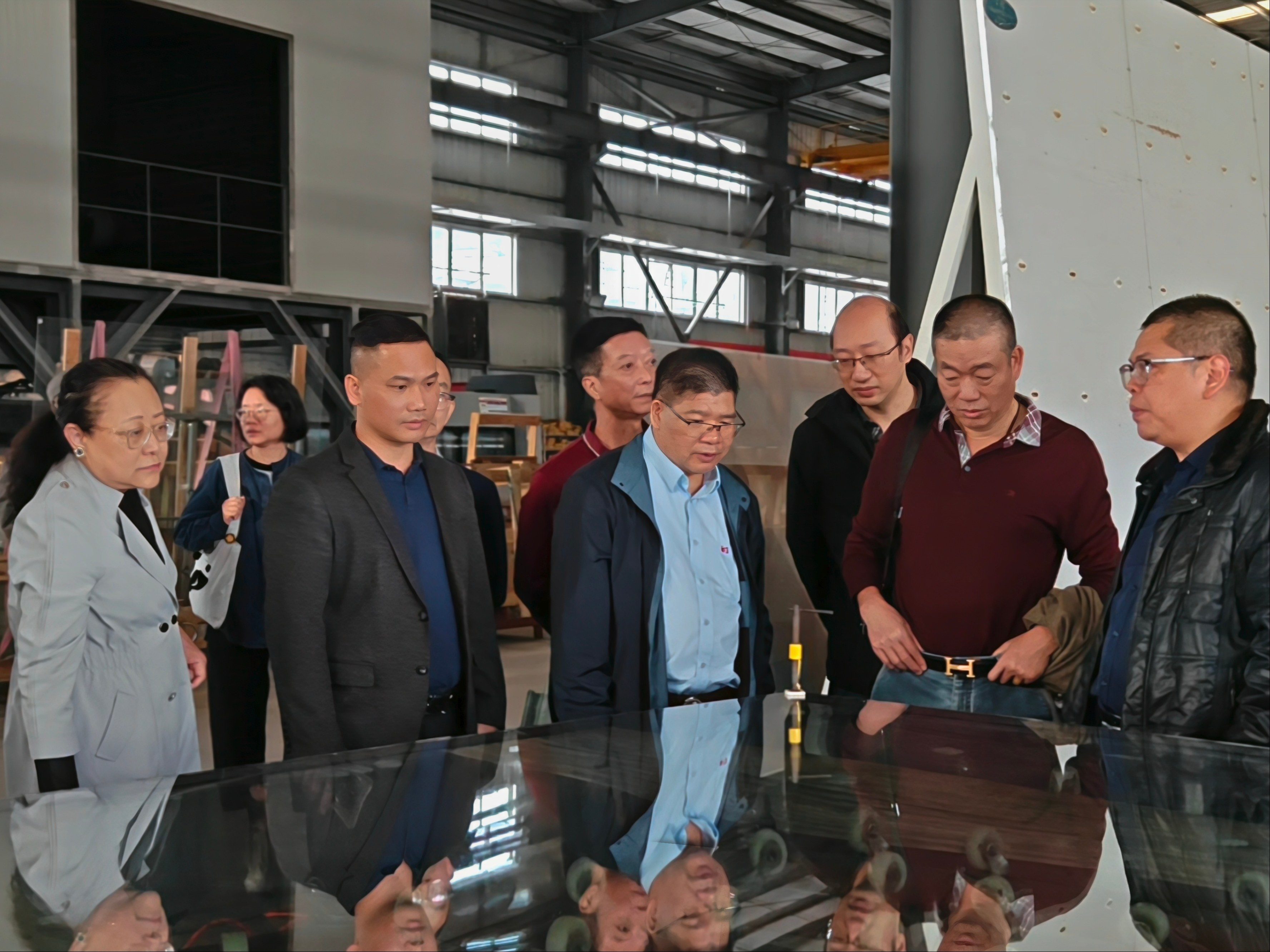 在董事長與業(yè)務經(jīng)理的引導下,考察團移步至公司自動化生產(chǎn)車間。業(yè)務經(jīng)理向代表們系統(tǒng)講解了防火玻璃從原片到成品的完整工藝流程,介紹了智能化生產(chǎn)設備在提升產(chǎn)品精度與穩(wěn)定性方面的作用。